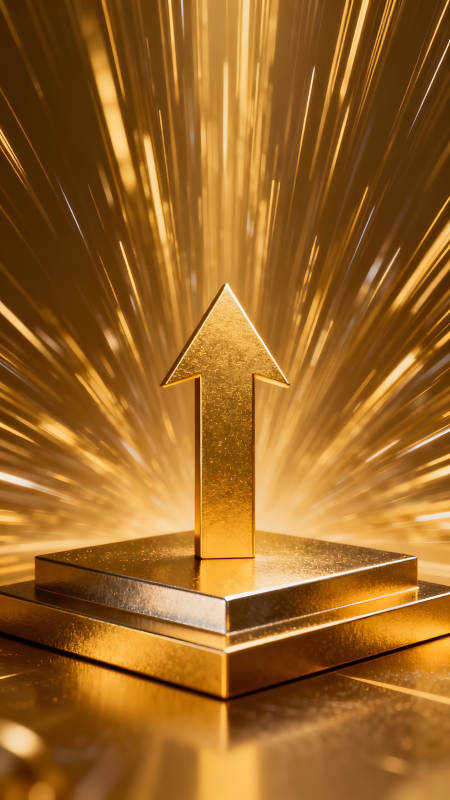 金色箭头上升标志闪耀