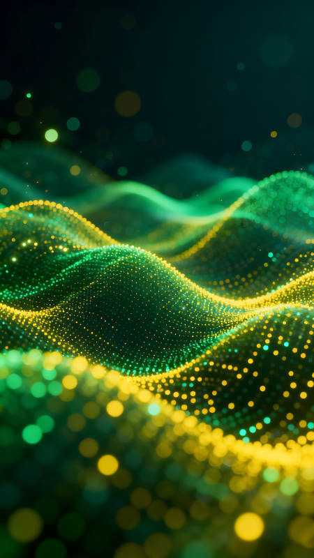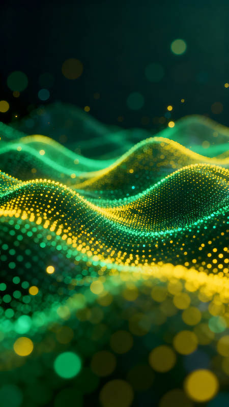 绿黄光点构成的抽象山丘