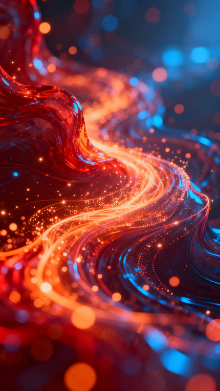 抽象的光线流动与闪耀的粒子构成