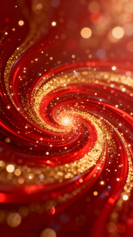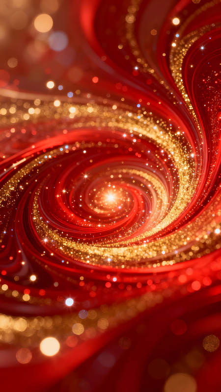 绚丽红色漩涡金色光点闪烁