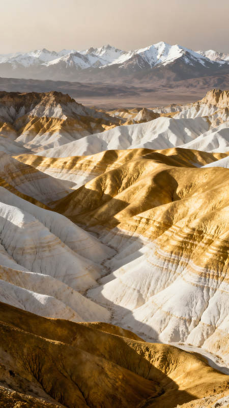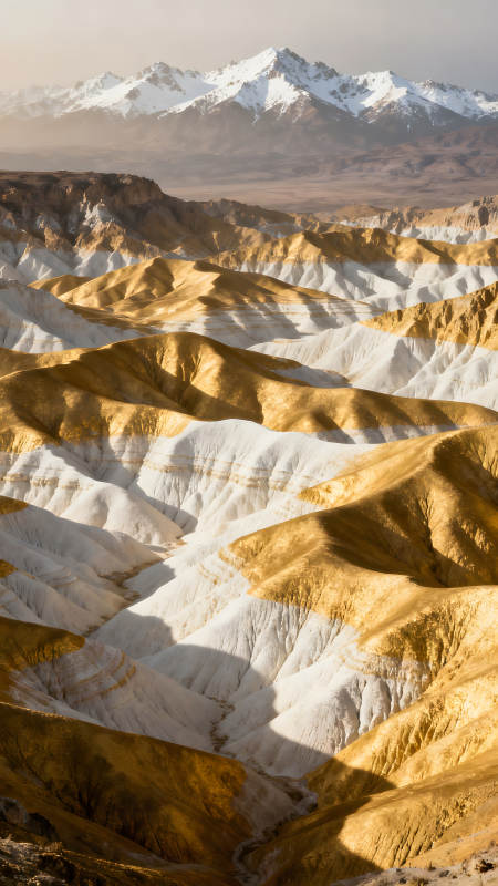 金色白色山丘与雪山