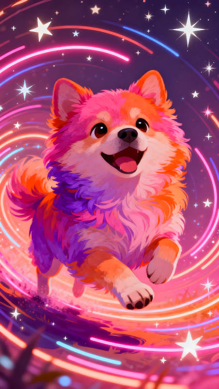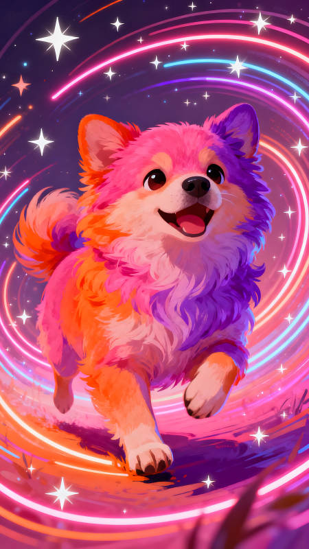 彩色小狗在星空中奔跑