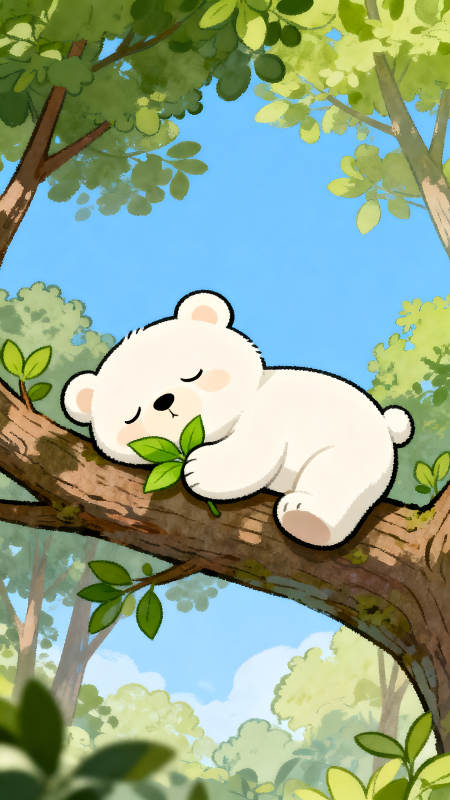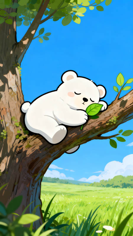 小熊树上睡觉叶子清闲