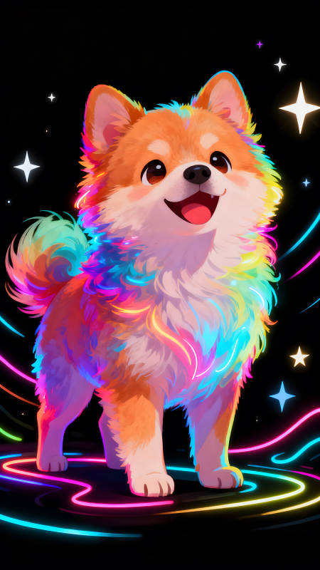 可爱彩虹柯基犬发光特效背景