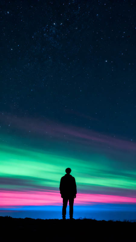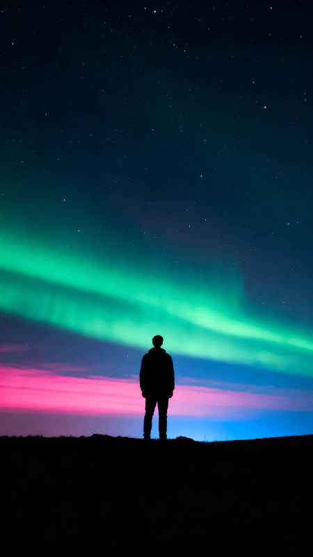 极光下的人仰望星空