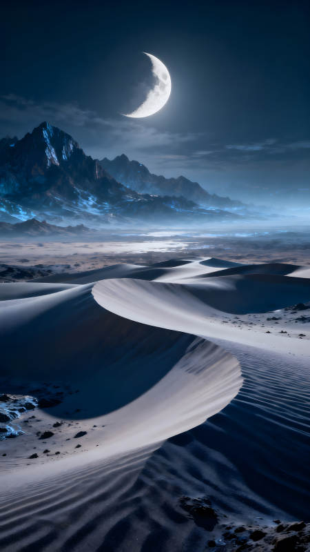 夜晚沙漠月亮山脉风景
