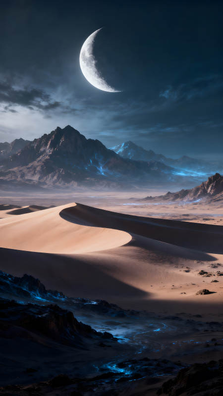 沙漠月夜奇幻景观