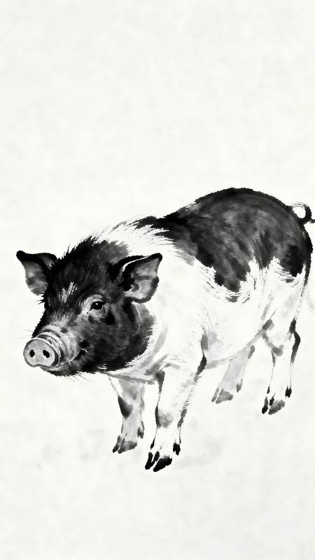 水墨风格的猪绘画作品