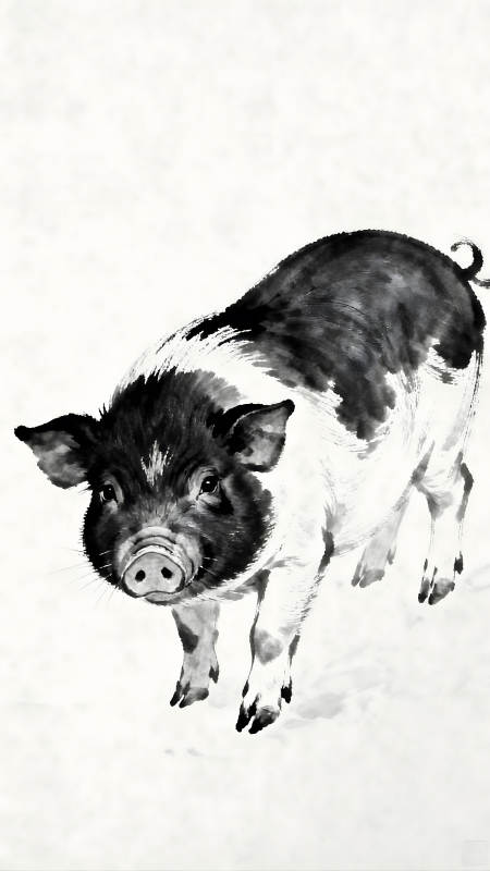 水墨画小猪黑白对比生动形象