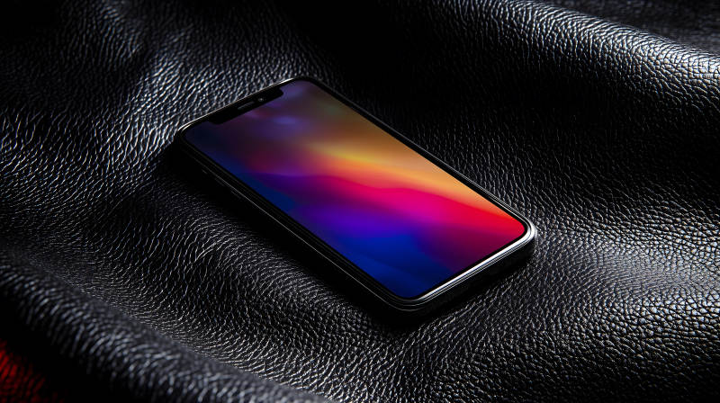 手机在黑色皮革上