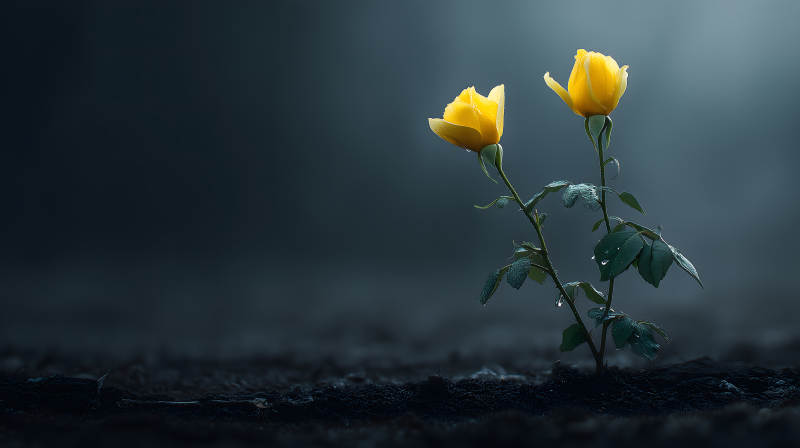 黑暗中绽放的黄玫瑰