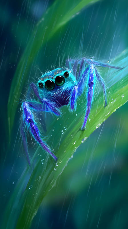 雨中可爱蓝色蜘蛛