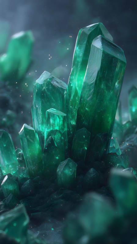 翠绿晶体岩石之美