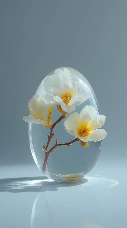 透明花瓶里的木兰花