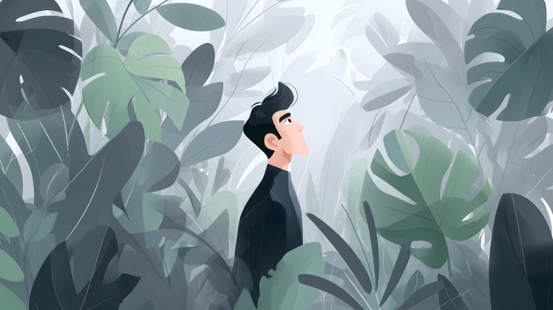 男子凝视丛林风景