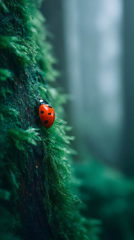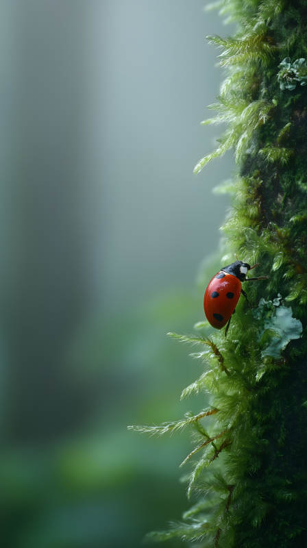 红瓢虫与绿苔藓