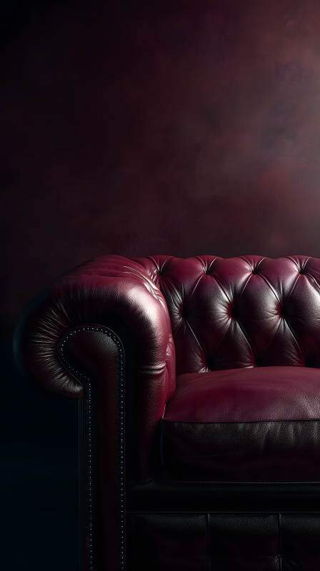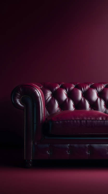 紫红色真皮沙发特写