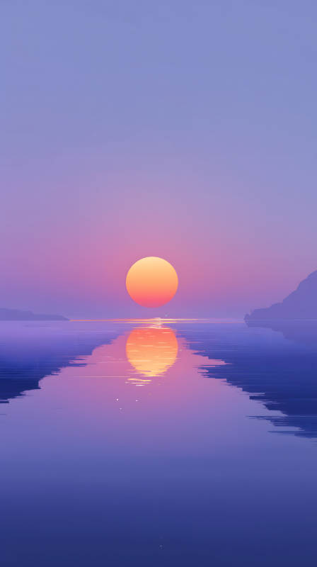 落日湖面美景