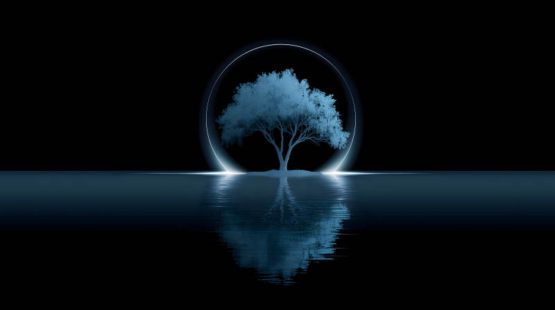 树影水中倒影神秘意境