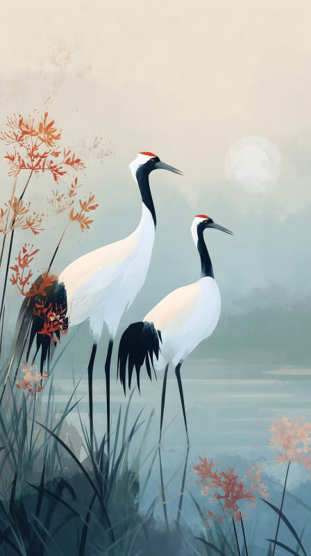 静谧鹤影湖光