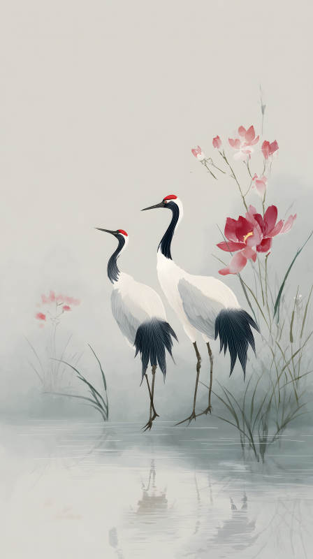 水墨丹青鹤舞莲