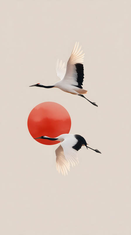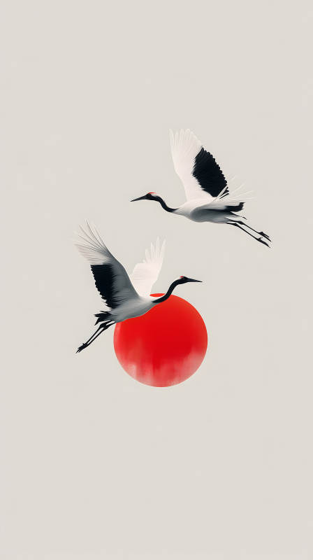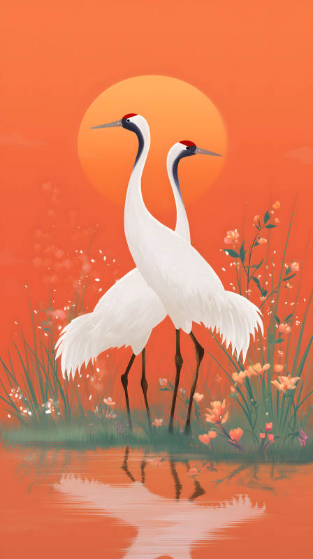 鹤与红日唯美意境