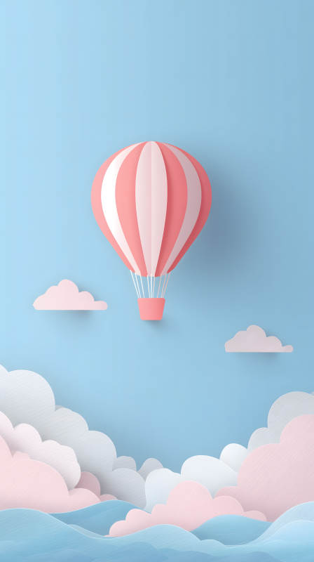 粉色热气球飞翔天空