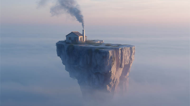 孤屋耸立雾海之上