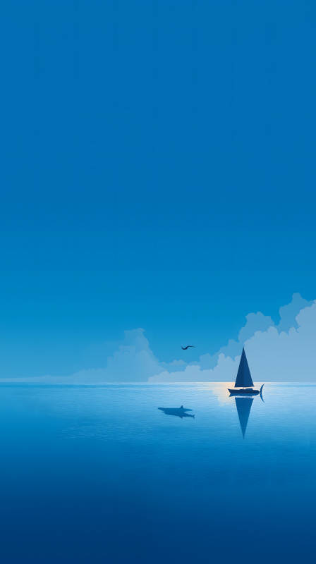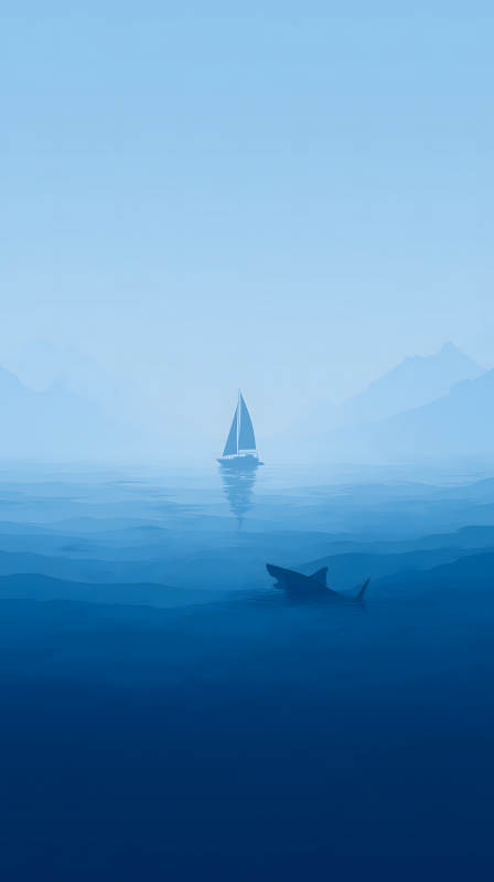海面上的帆船与鲨鱼