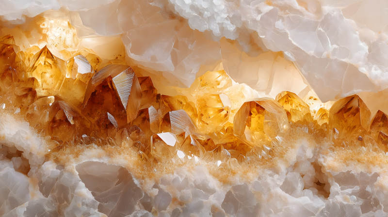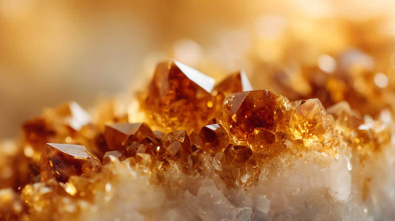 金黄色水晶矿石特写