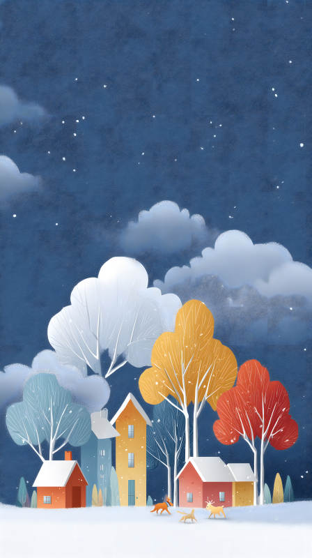 冬日小镇风景绘图