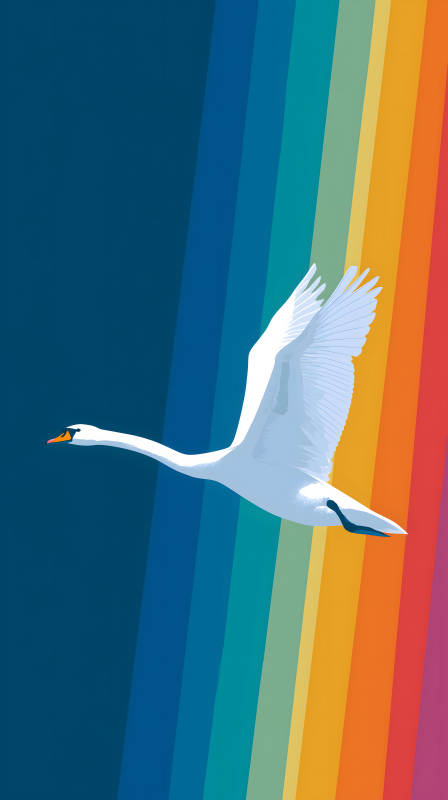 天鹅飞翔彩虹之上