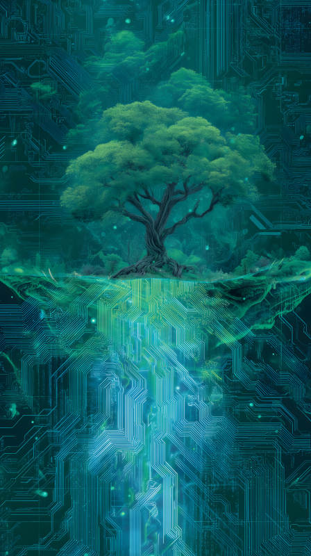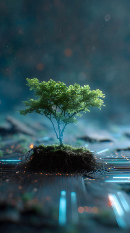 树木与电路板融合