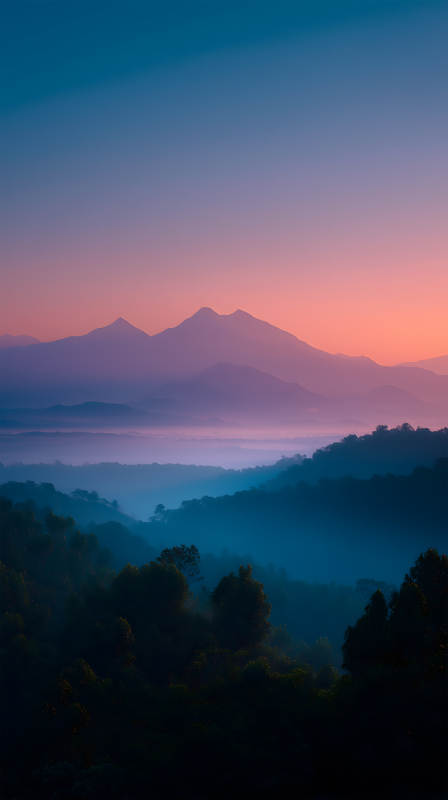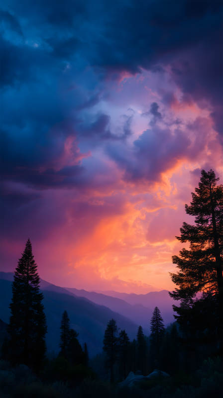 暮色山林绚烂天空