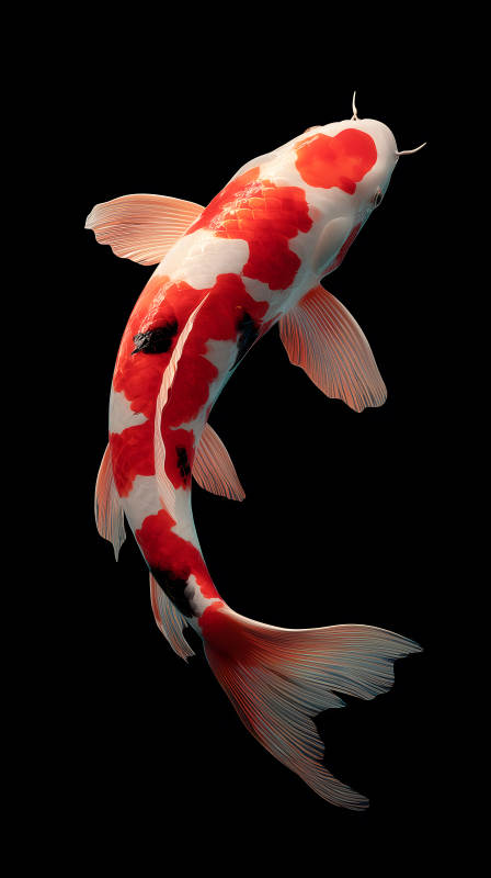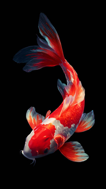 红白锦鲤黑色背景