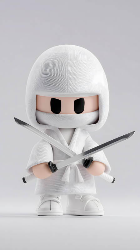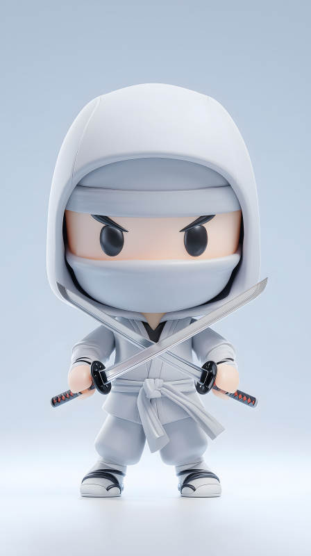 白色忍者卡通形象持刀