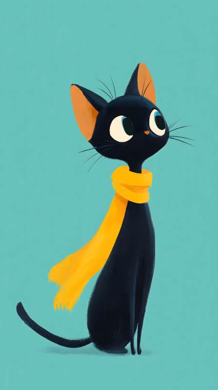 戴着围巾的卡通黑猫