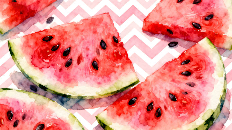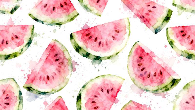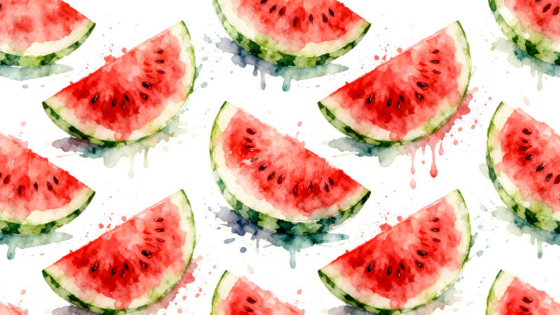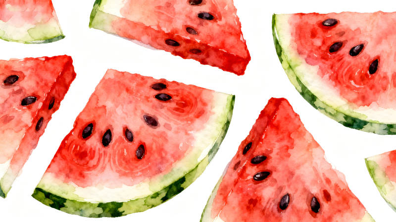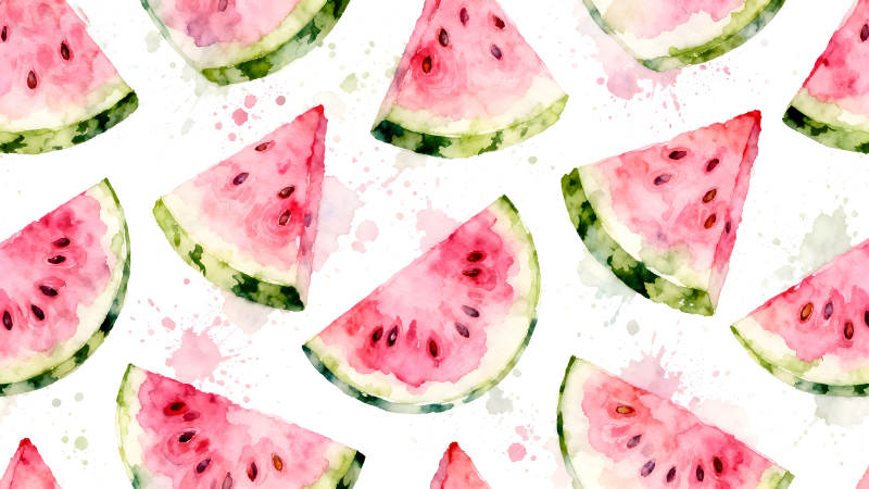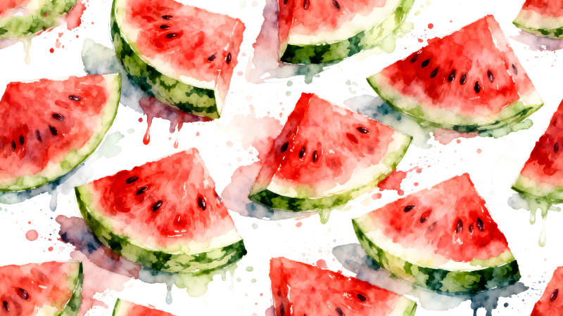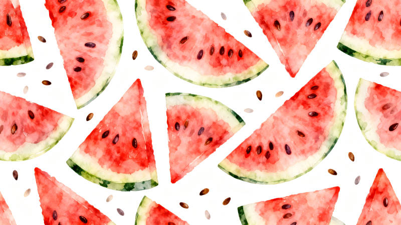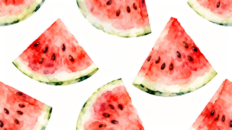 水彩西瓜切片与种子散落的图案