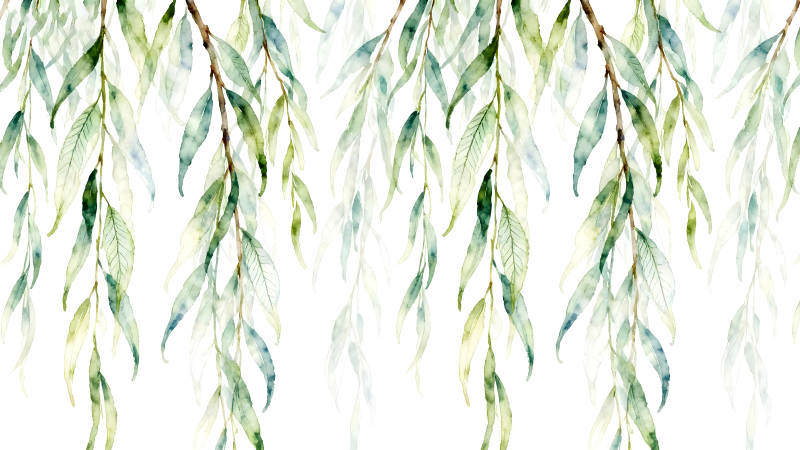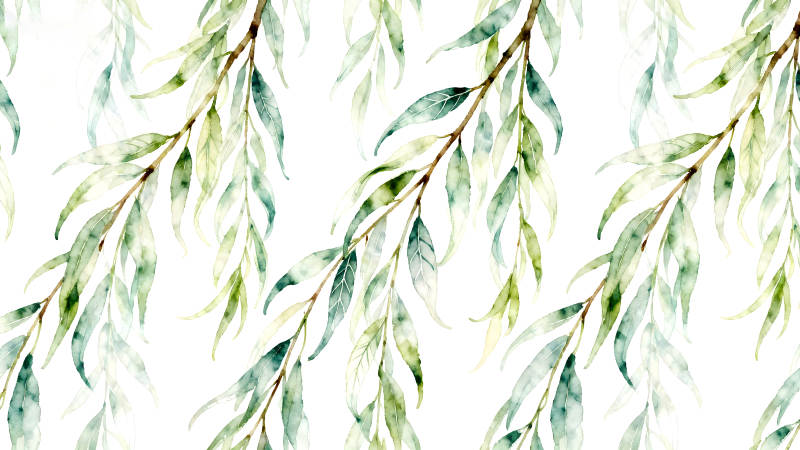 水彩风格的柳树枝叶图案