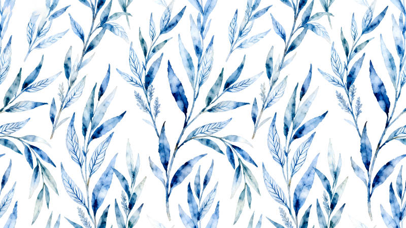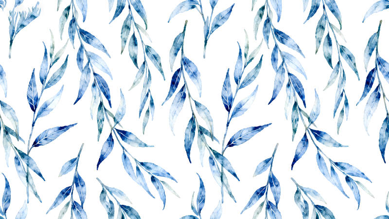 水彩风格的蓝色枝叶图案