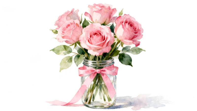 粉色玫瑰花束水彩画