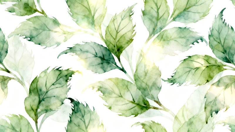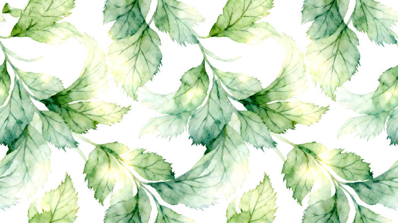 水彩风格的绿色叶片图案