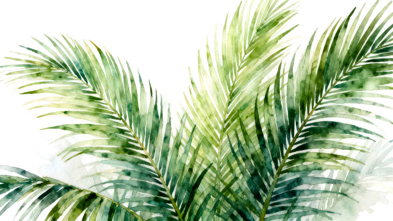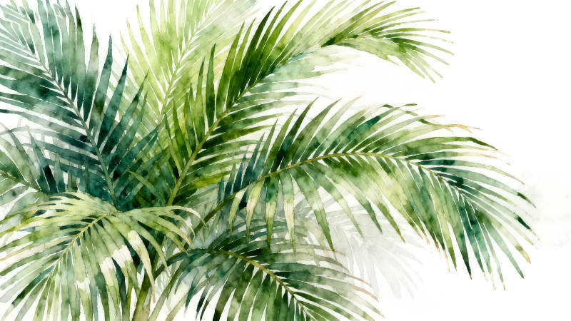 水彩风格的热带棕榈叶