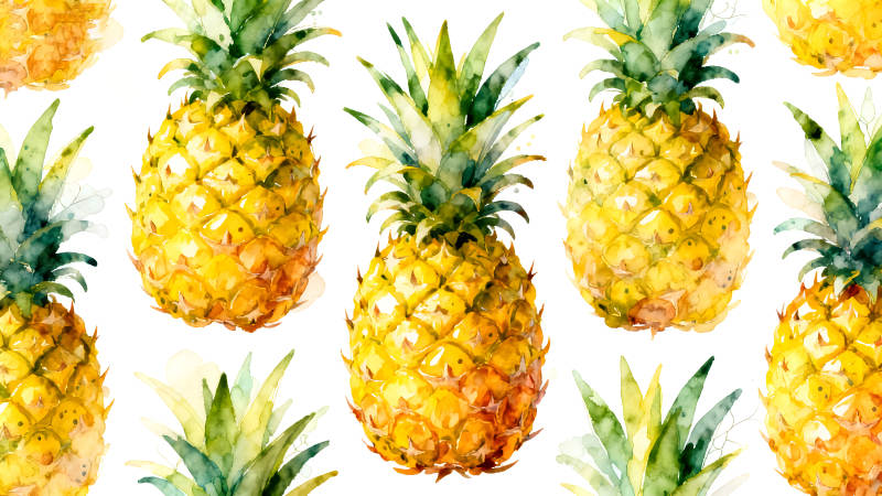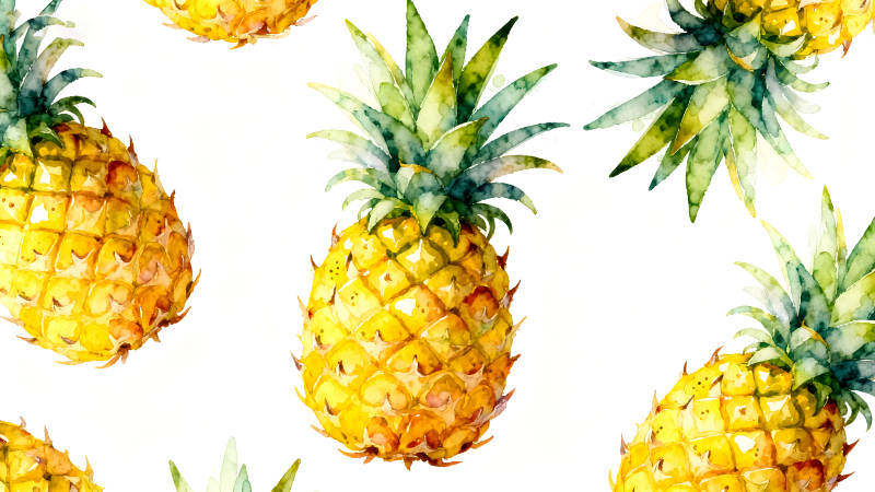 水彩菠萝图案白色背景鲜艳水果
