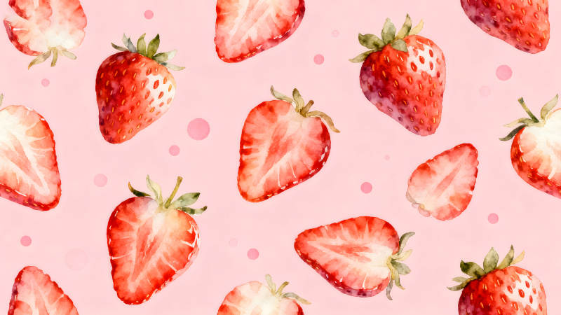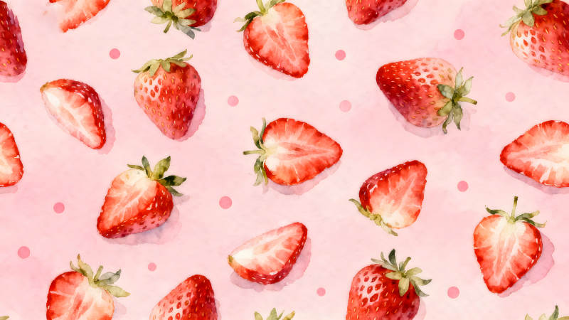 水彩草莓图案粉色背景可爱清新
