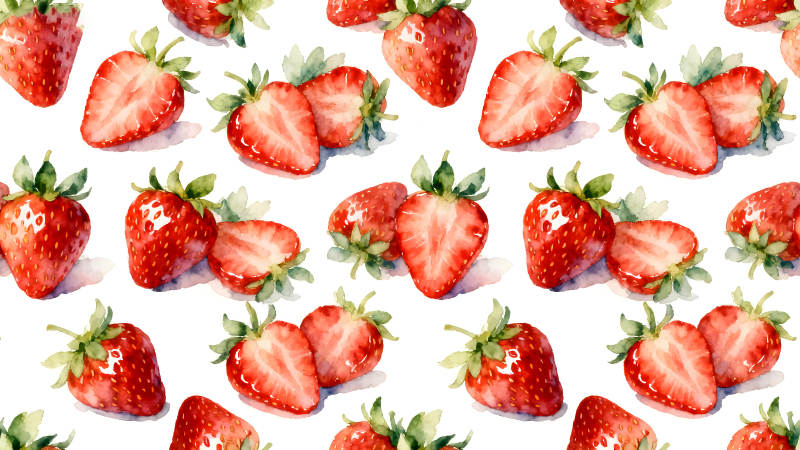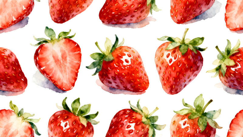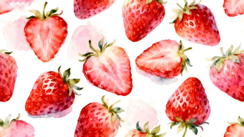 水彩草莓图案白色背景