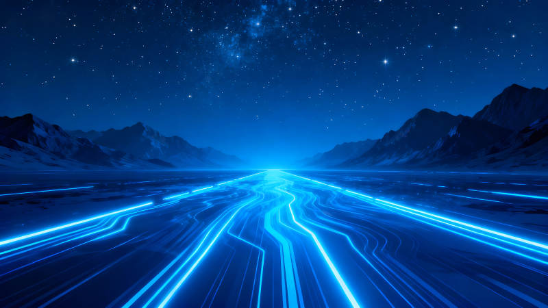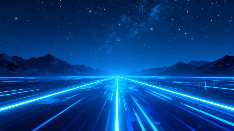 夜空下的科技道路山脉