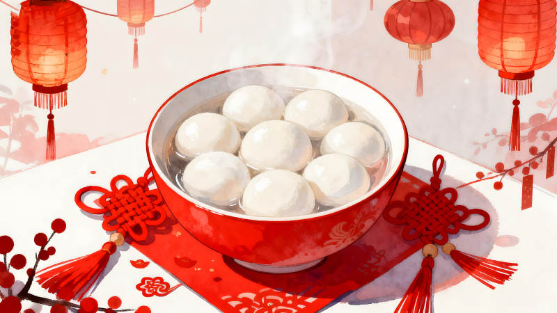 汤圆盛宴喜气洋洋灯笼高挂