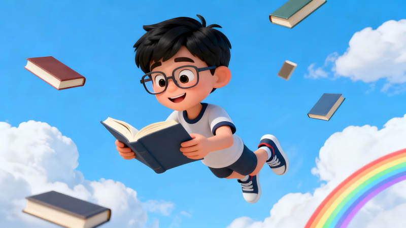 卡通男孩读书飞翔