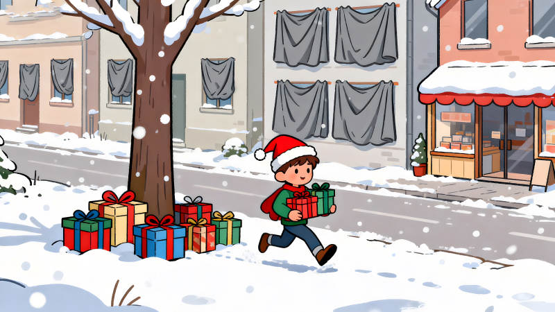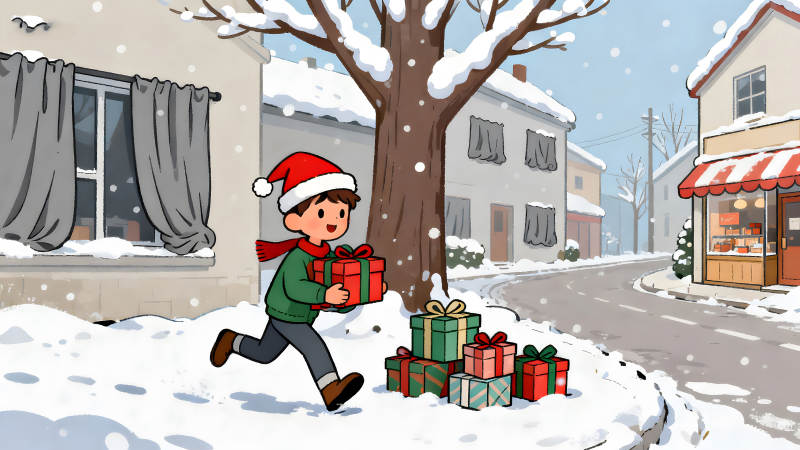 雪中送礼的小男孩
